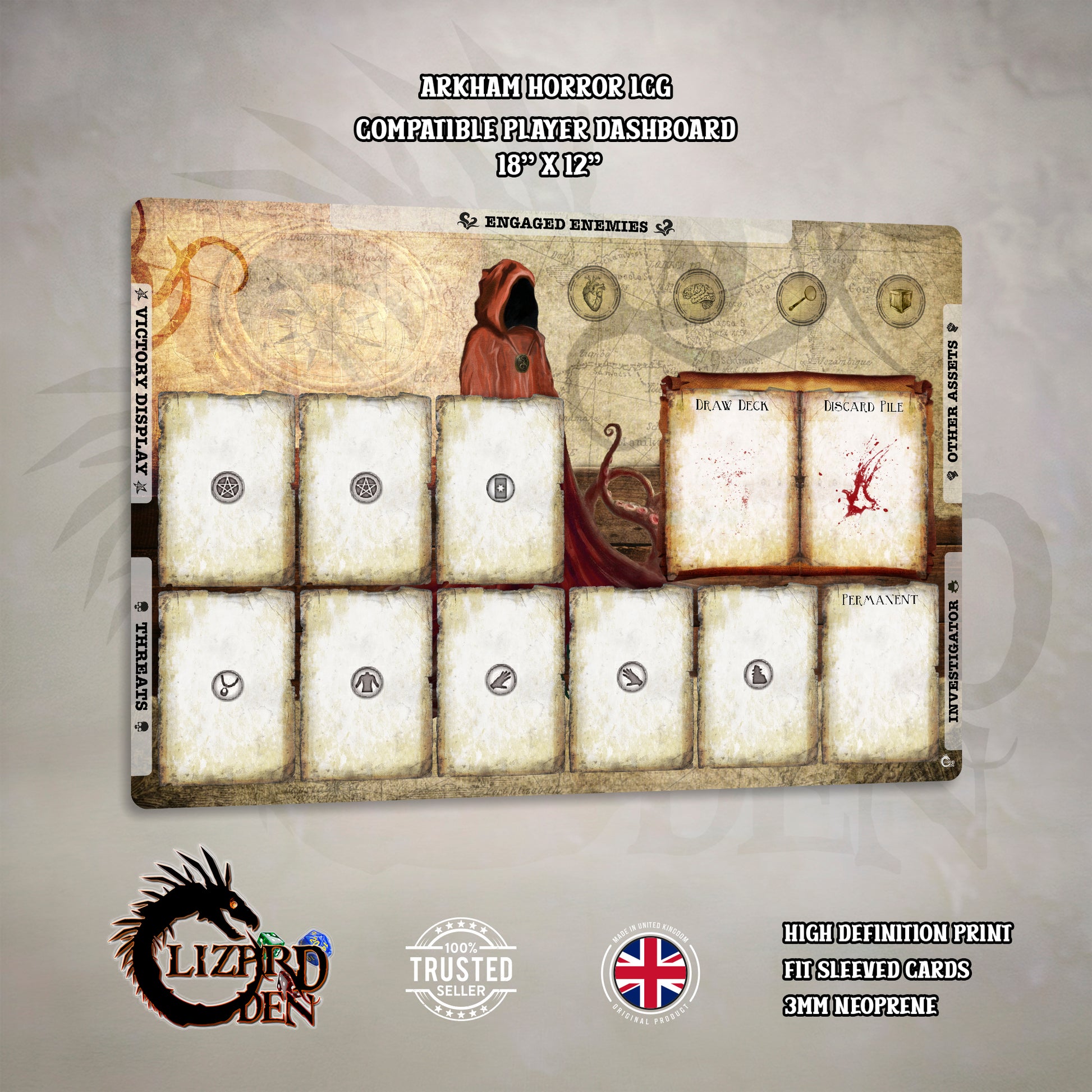 Perfect for solo or compact play, the mat helps you manage your investigators, cards, tokens, and areas of play in a clean and organised fashion.