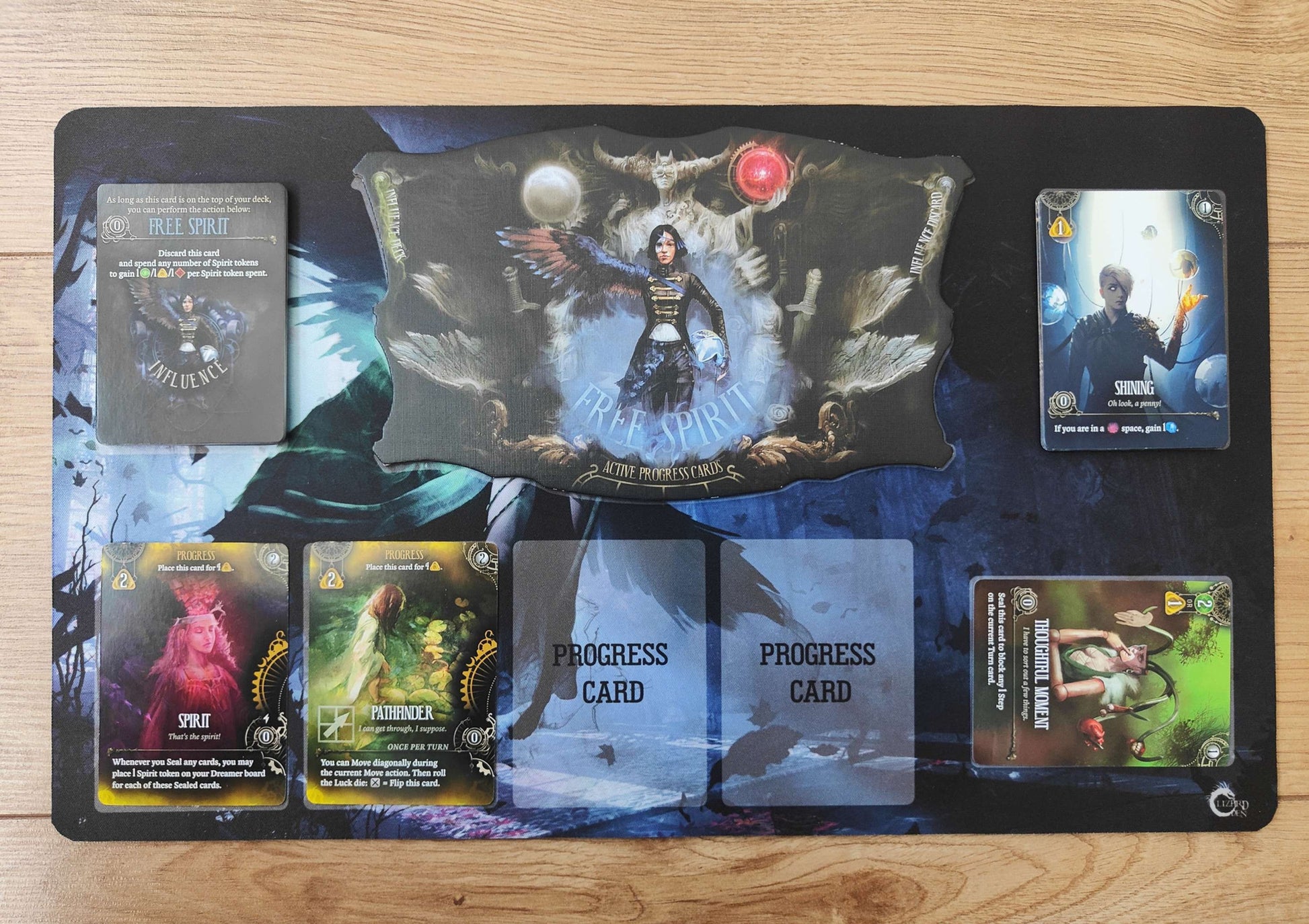 Designed to complement the game’s surreal atmosphere, this mat provides dedicated zones for your character board, tokens, cards, and resources — helping you stay focused and fully immersed in the story.