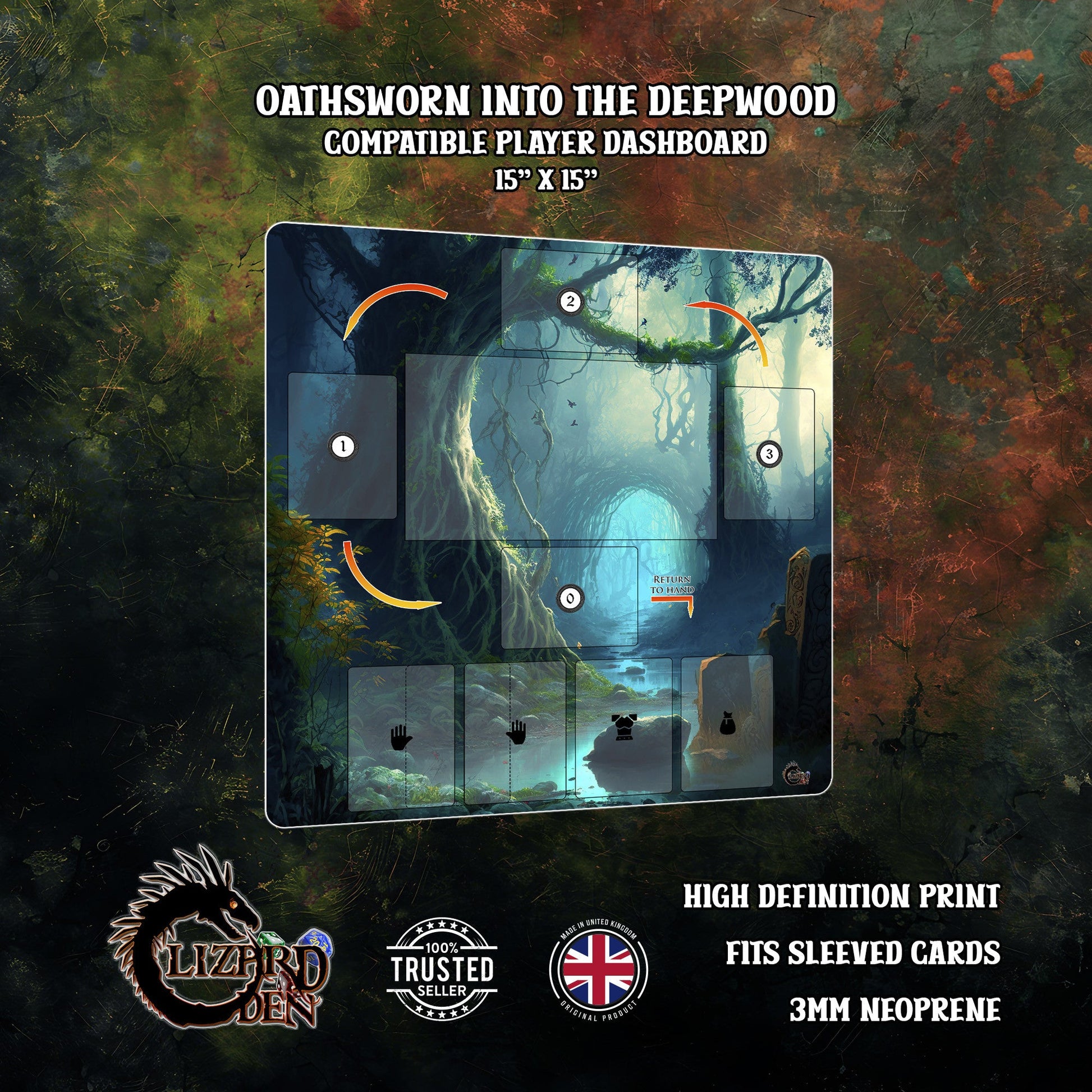 Each mat features a layout tailored to character and companion play, keeping cards, abilities, and tokens in order while reflecting the dark, thematic world of Into the Deepwood. Whether you’re braving the story mode or diving into epic encounters, these mats offer both functionality and style.