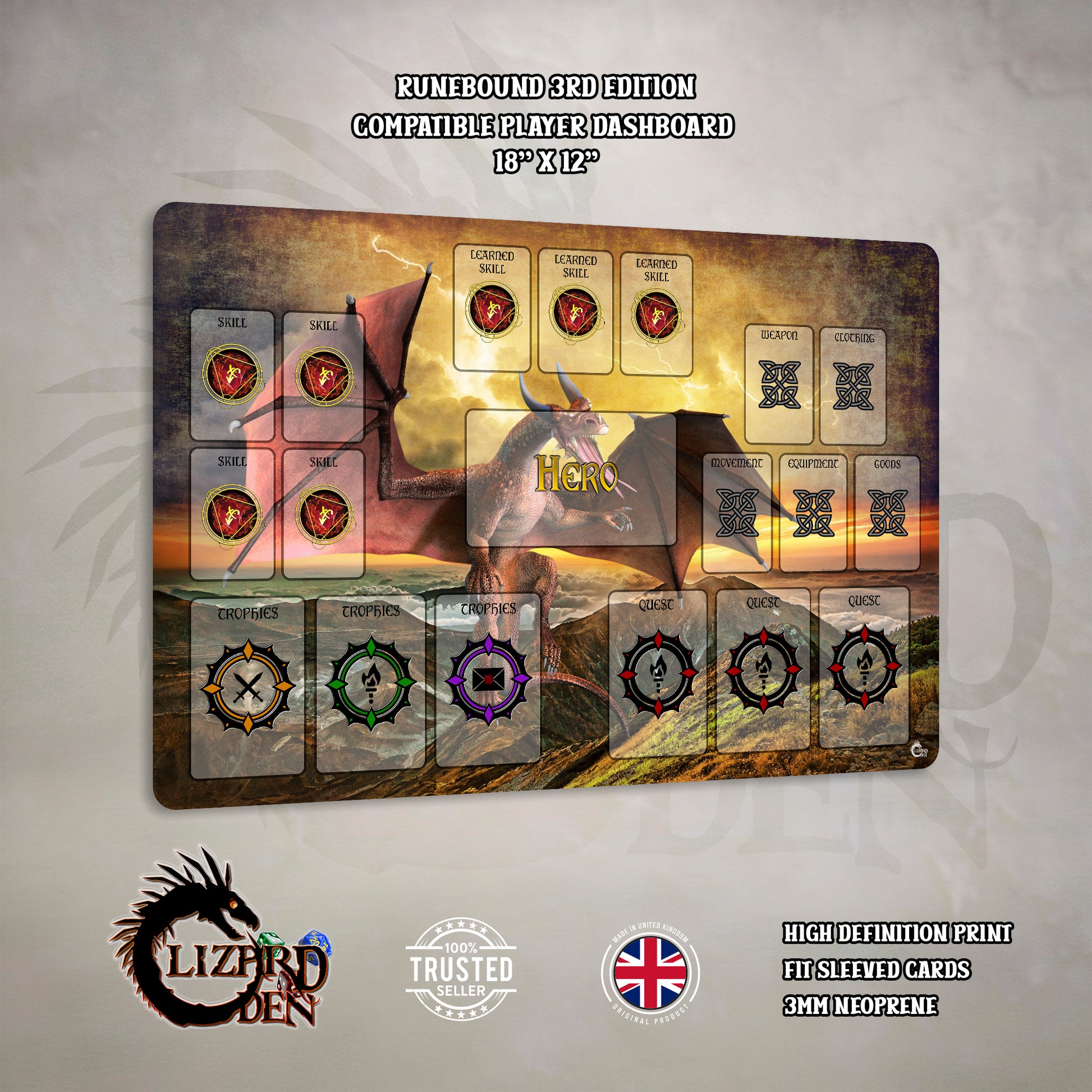 Enhance your adventures in Runebound 3rd Edition with this beautifully printed, custom-made neoprene game mat, tailored for players who appreciate a clean, thematic, and immersive game setup.