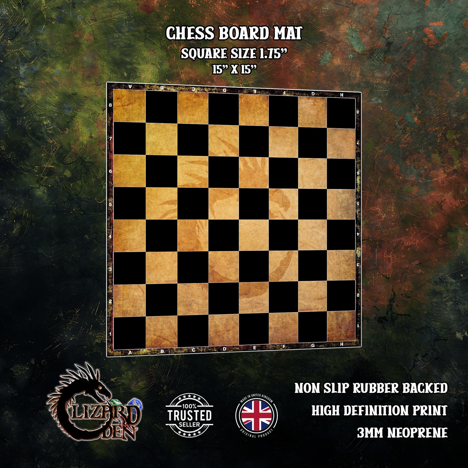 Add style and practicality to your game nights with this custom-designed neoprene chess board mat, featuring a unique layout beautifully printed in high definition. Designed for both casual players and serious strategists, this mat is a perfect gift for any chess enthusiast.